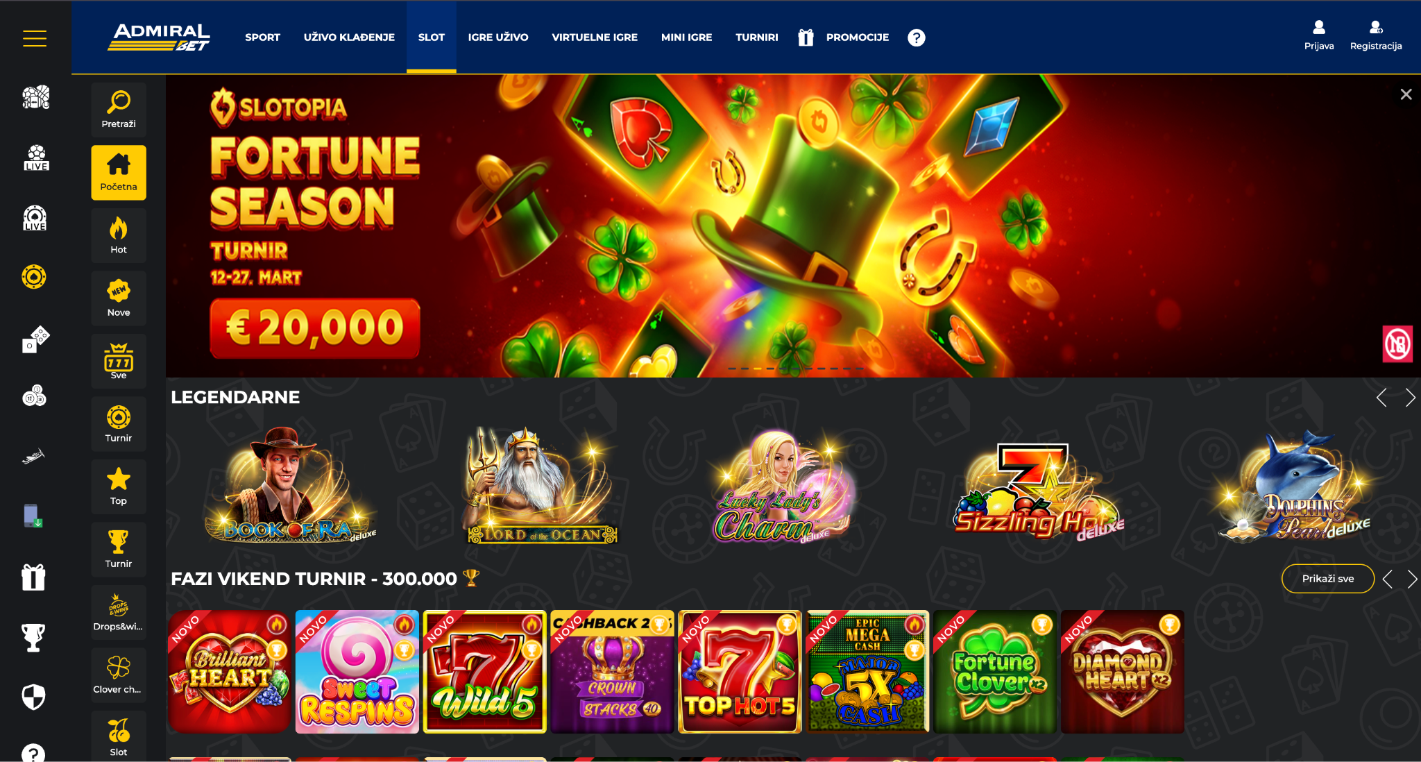 Igrački automati (Slots): Preko 1.000 naslova od vodećih provajdera poput Novomatic, Pragmatic Play, EGT i Microgaming. Hitovi poput Book of Ra, Sweet Bonanza, Starburst, Gonzo’s Quest i Legacy of Dead privlače igrače svojim impresivnim grafikama, bonus rundama i potencijalom za velike dobitke – neke igre nude i progresivne džekpotove koji mogu promeniti život. Dodatno, admiral bet bonus dobrodoslice može se iskoristiti na ovim slotovima, čime dobijate više šansi za dobitak bez dodatnog uloga.